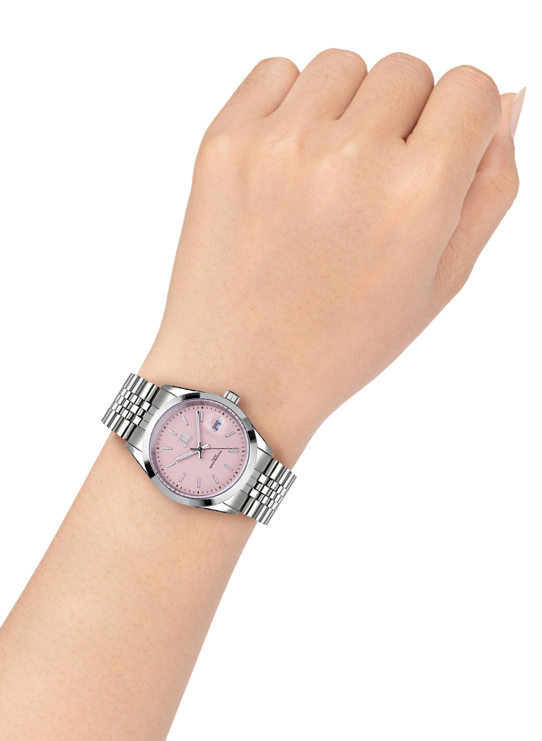 Orologio uomo, movimento quarzo Myota, cassa acciaio, cinturino acciaio, quadrante colorato, fondello acciaio a vite, vetro minerale, diametro cassa 36 mm, datario ore 15, water resistant 10-ATM