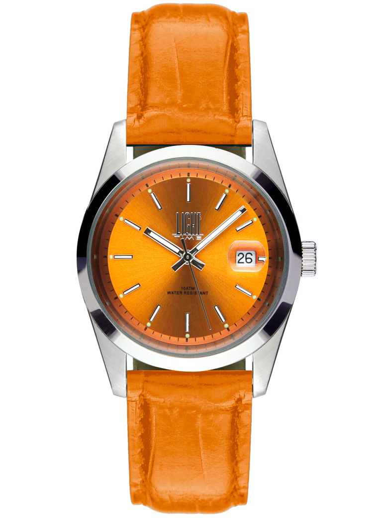 Orologio unisex con movimento al quarzo myota, Cassa in acciaio, Diametro mm. 36 Quadrante colorato con data a ore 3 Vetro minerale Bracciale in pelle stesso colore del quadrante