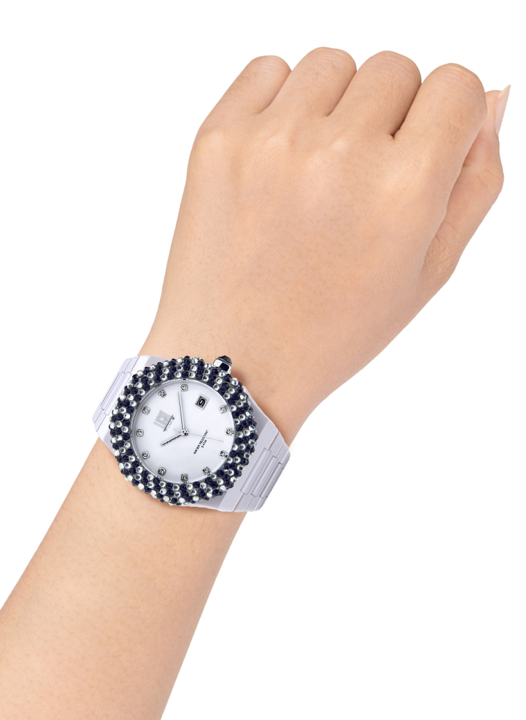 Orologio donna con movimento al quarzo Miyota, Cassa in policarbonato, Diametro mm. 40 Ghiera con 200 cristalli Preciosa inseriti a mano, manifattura italiana Quadrante bianco con data a ore 3 Vetro minerale con lente Bracciale in policarbonato Fibbia acciaio a scomparsa Su richiesta, possiamo regolare la dimensione bracciale in base alla misura del tuo polso. Durante l’ordine potrai fornire la circonferenza del tuo polso in centimetri ed inserirlo nel campo note.